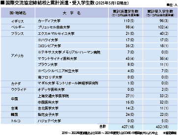 その後、国際交流協定校を増やし、現在その数は世界9カ国・地域に13校を数え、2025年5月までに427人の学生をこれらの協定校へ派遣するとともに、受入学生数も432人にのぼっています。 派遣留学は第6学年生を対象とし、留学先での病院実習は単位認定されます。年間の派遣学生総数は、コロナ禍以前は25人強、コロナ禍以降は20人弱を数えます。