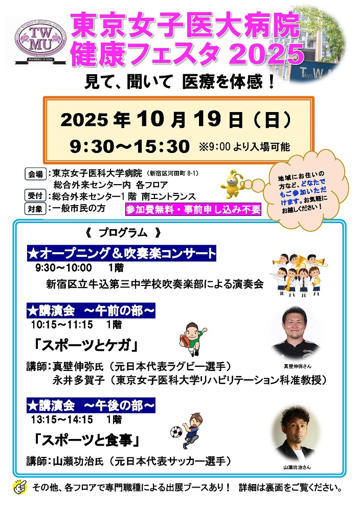 2025年10月10日 東京女子医科大学病院にて健康フェスタを開催します