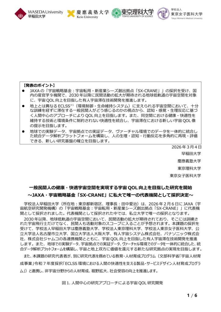 プレスリリース/Press Release 一般民間人の健康・快適宇宙空間を実現する宇宙QOL向上を目指した研究を開始 2026.03.18 プレスリリース/Press Release 東京女子医大ウェブサイト Tweet Share +1 2025 TERMIS-AP Webinar Stud…前の記事