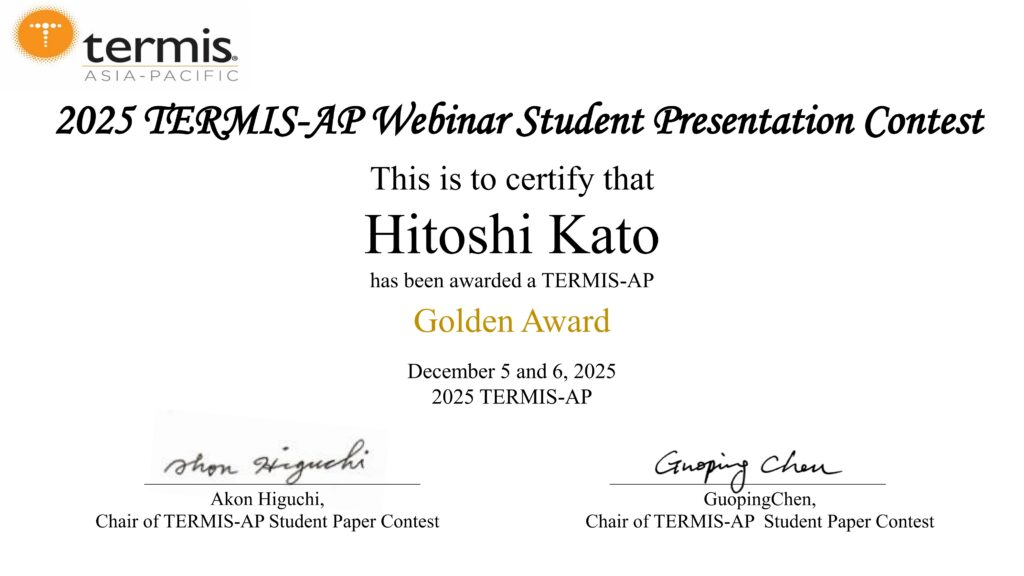 Gold Award 加藤 等(交換学生 早稲田大学・修士2年)