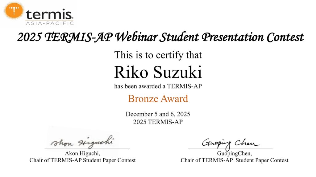 Bronze Award 鈴木理子(交換学生 早稲田大学・修士2年)