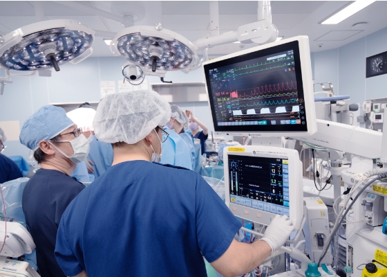 心臓麻酔を当院のみならず、希望によっては心臓血管手術に特化した病院で学ぶこともできます。専門医受験に必要な特殊麻酔症例数は3年間で取得できます。