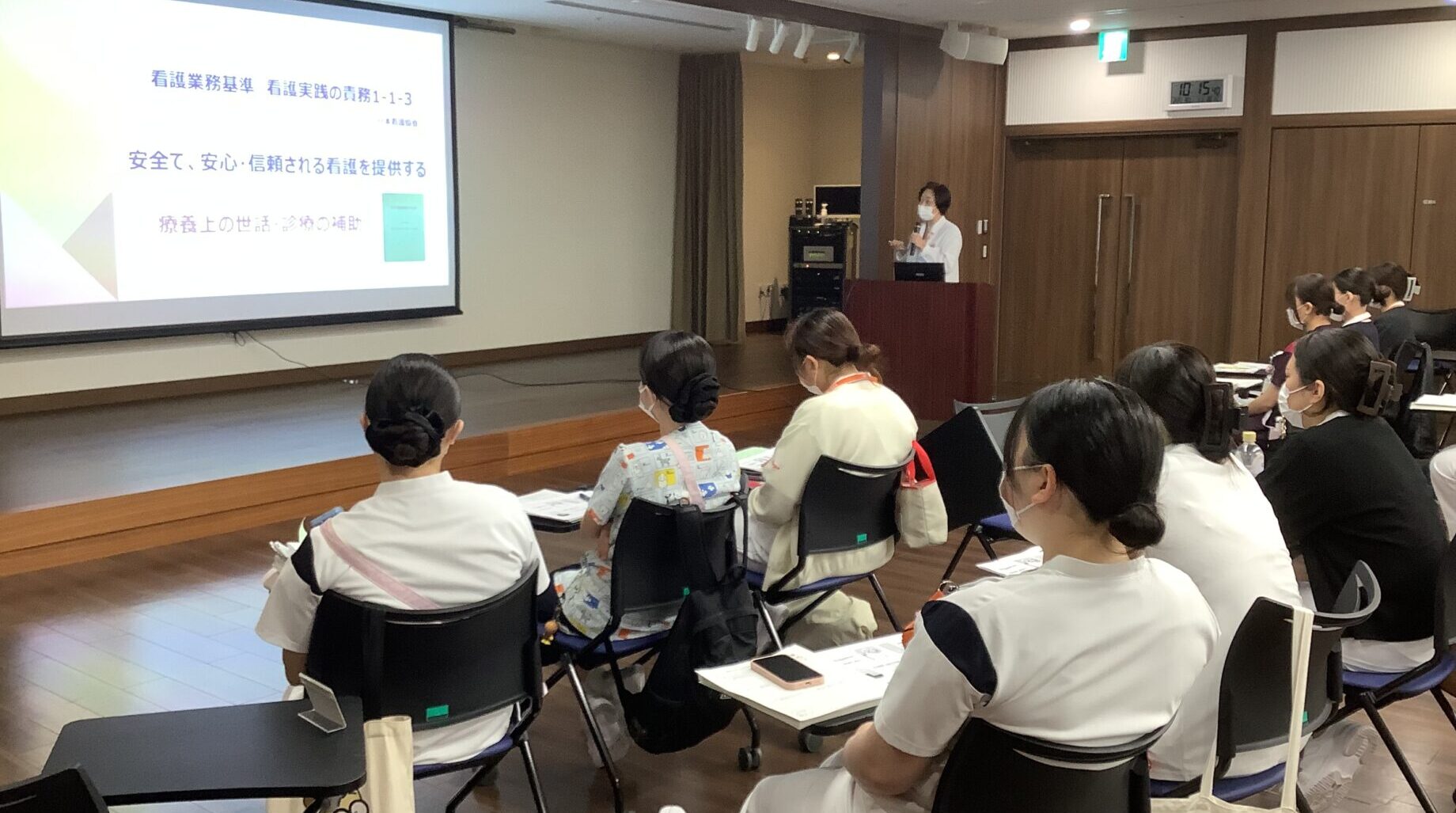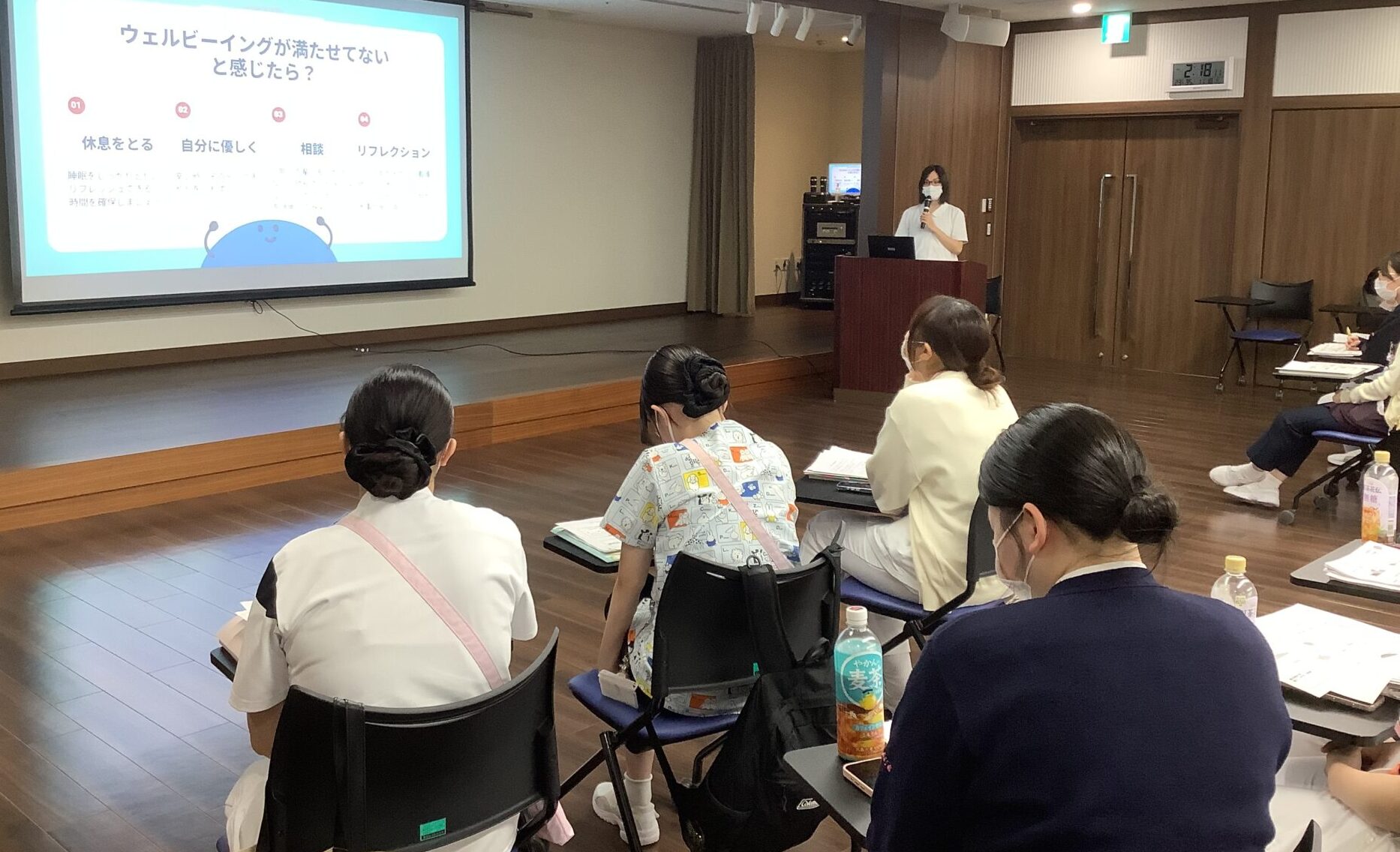 任される仕事量の増加や、多様な業務に携わるようになってきた今、看護職自身の健康の大切さを知ることができるように、メンタルヘルスエキスパートナースからの『責任に向き合うためのセルフケア』の講義を聞きました。