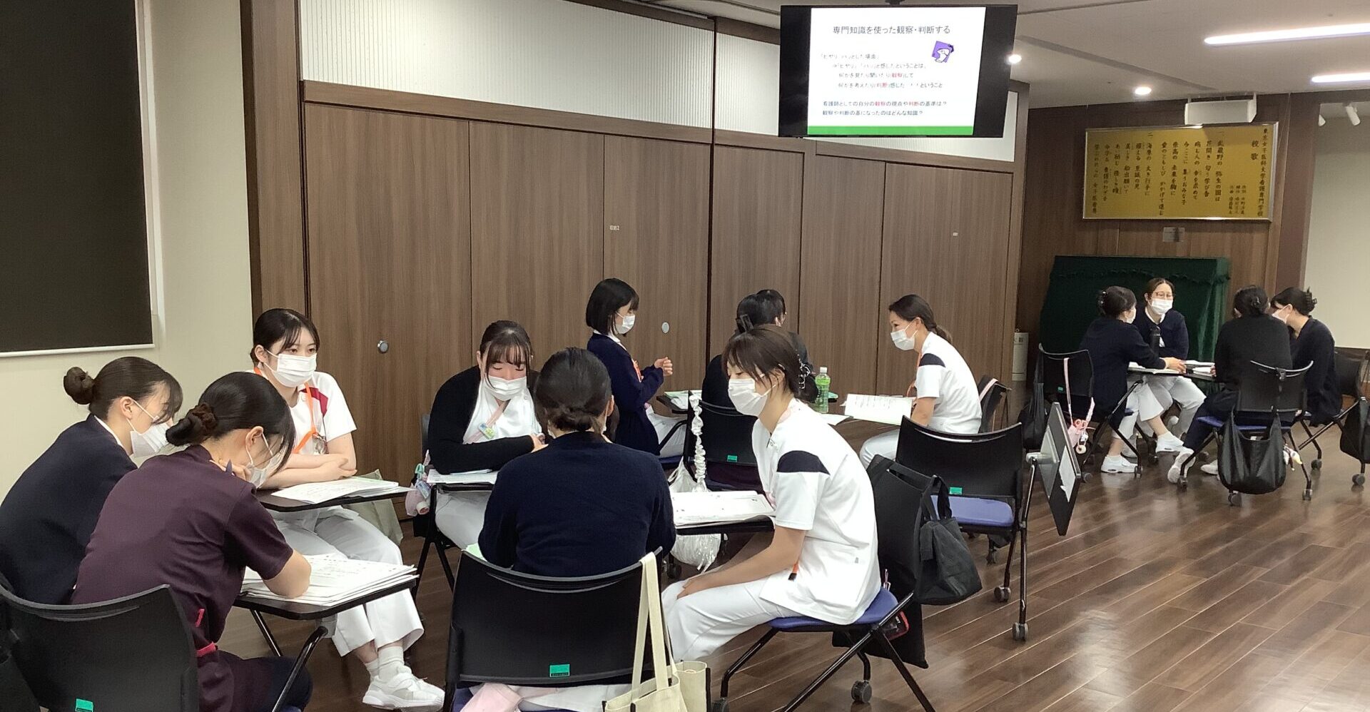 「一人で行うこと、できることが多くなったと同時に、より責任を感じるようになった」「グループワークを通して話し合う内容やエピソードから成長を感じた」「研修を重ねるたびに成長していることを感じて嬉しくなった」「仲間と振り返ることで、気づかなかった変化に気づくことができた」など、それぞれの成長への気づきと、『安全・安心・安楽な看護実践のために必要なこと』を学び、看護のプロフェッショナルとしての基盤を積み上げていく上での支えあう機会となる研修となりました。