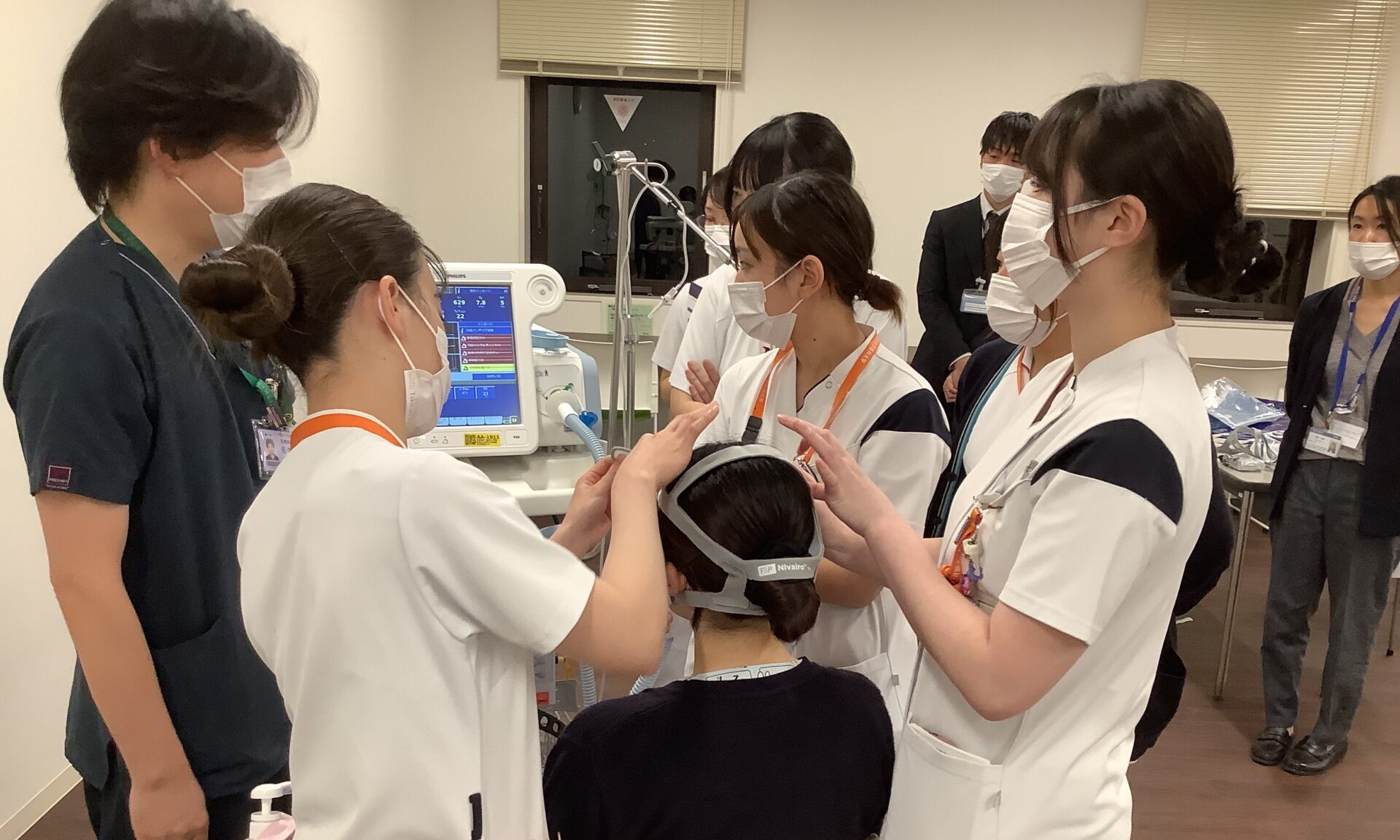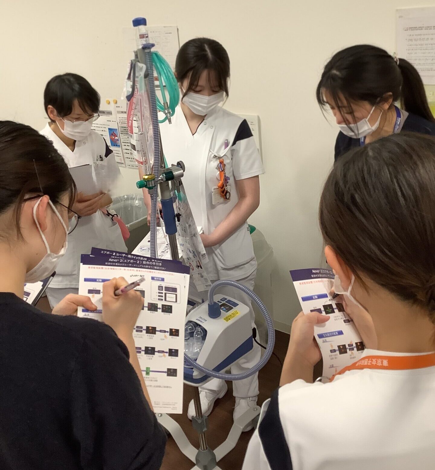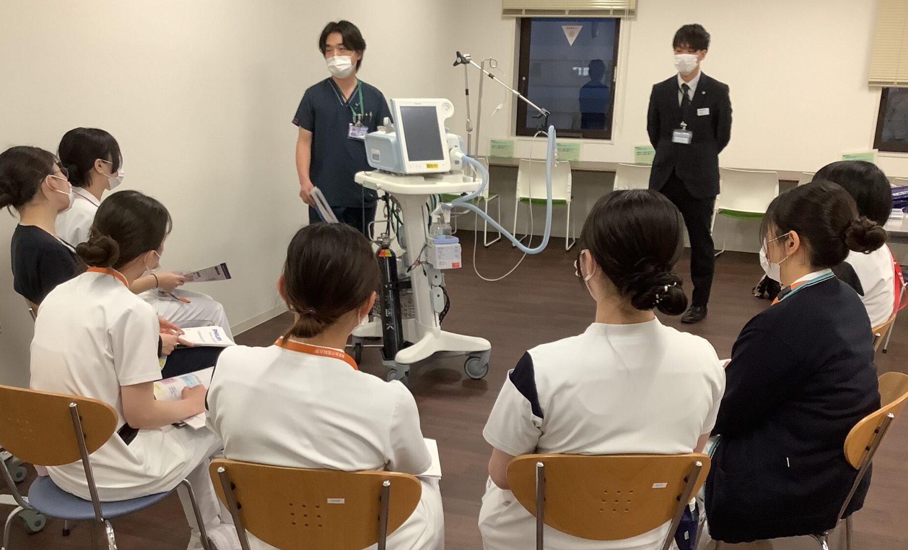「設定を間違えたり装着が正しくないと患者さんの負担になると体感した」「今後、呼吸器装着患者の受持ち時に学びを活かします」「触って使い方を知ることができていい勉強になった」など、実際に触れて操作を確認し、明日からの看護に直結できる学びを得ることができました。