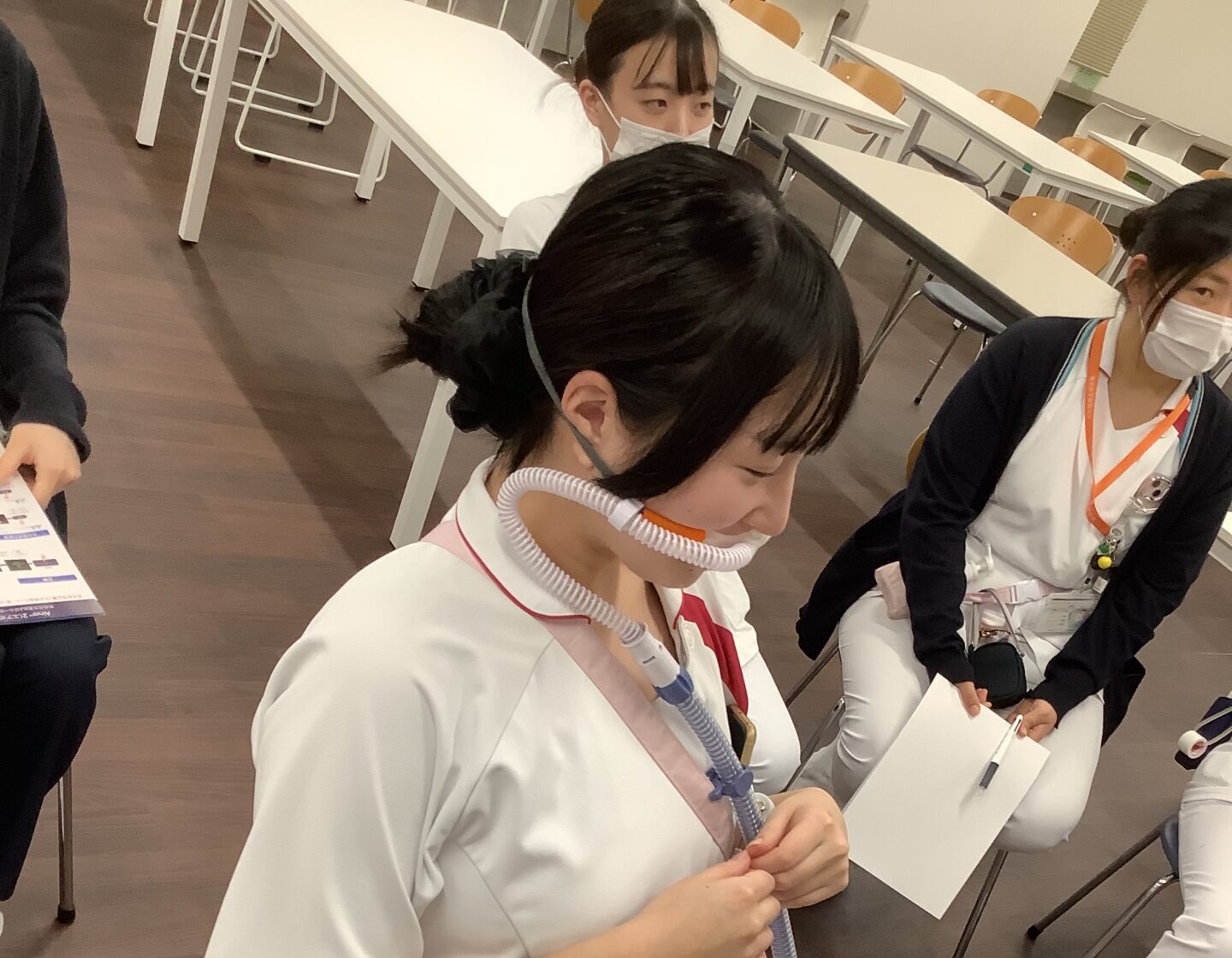 「治療のためには口を閉じた方がいいけれど、空いてしまう…。今後は、患者さんへの声掛けを変えよう」「送られてくる空気が温かい」など、実際に装着することで気が付くことがたくさんありました。