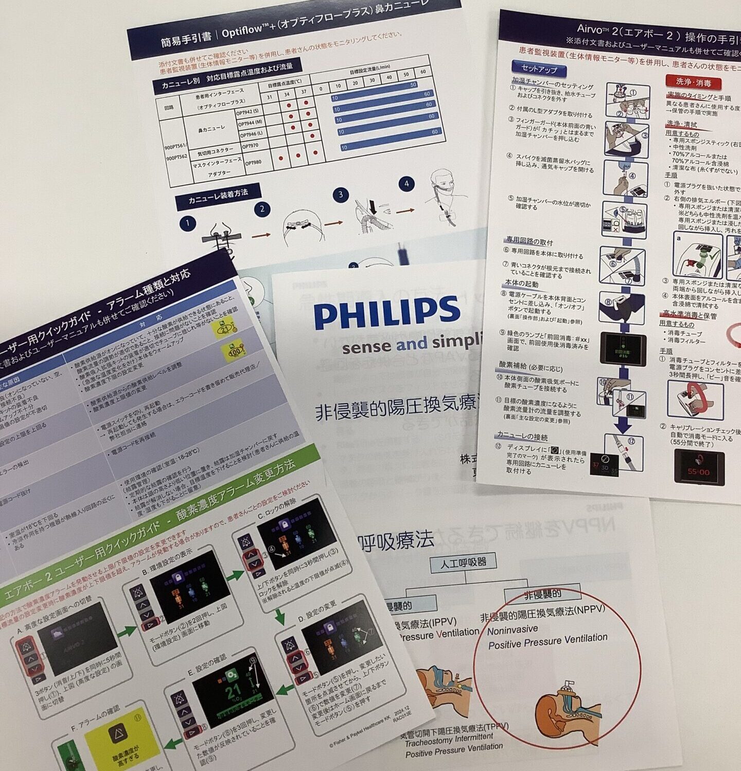 臨床の場面では、こうした機器を患者さんに使用します。実際に、患者さんに装着したり設定変更を実施しているスタッフだけでなく、初めて機器に触れるスタッフも研修会に参加しました。注意事項や装着時のアドバイスなどを学んだ後、実際に自分たちで患者体験もしました。