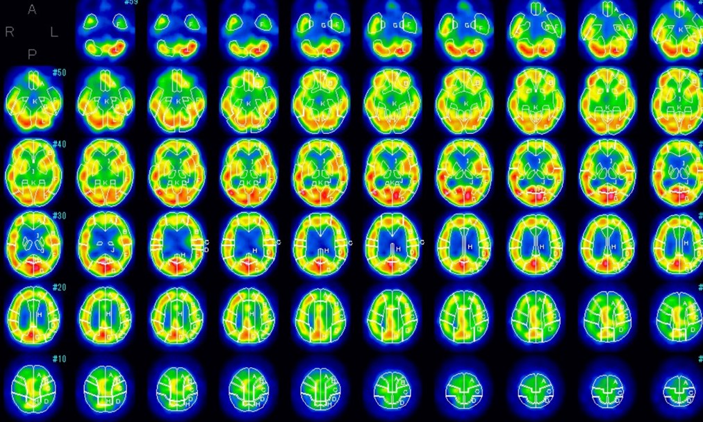 左大脳半球の血流低下が確認できます