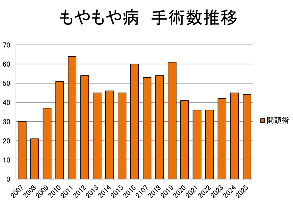 当院では、効果が早く現れる直接バイパス術を中心に手術を行っています。しかしながら、お子さんの場合は間接バイパスが発達する場合も多いため、直接バイパス術と間接バイパス術を組み合わせた手術を行っています。また、近年では高次脳機能評価の重要性が指摘されており、当院では専属の神経心理士と協力し、高次脳機能の評価を行っています。入院中の対応として、小児専用の病床を準備しており、院内学級なども充実させています。小児病棟には、専属の小児専門脳神経外科医がおり、血管障害のチームと小児専門チームの共同チームで入院中の対応をしております。
