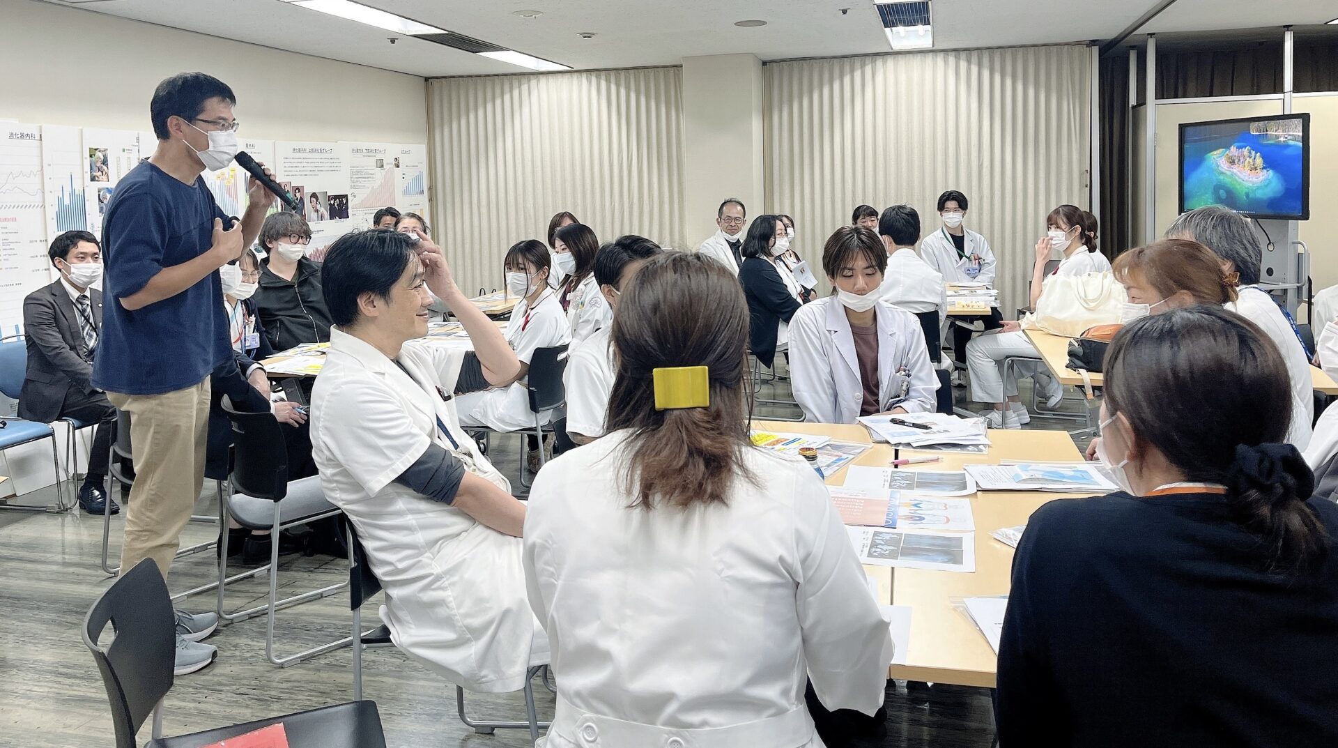 スモールグループディスカッション(SGD)を開催し、テーマを決めて多職種(医師・看護師・薬剤師・理学療法士等)が集まり、職種間の垣根を超えて学びあう機会があります。