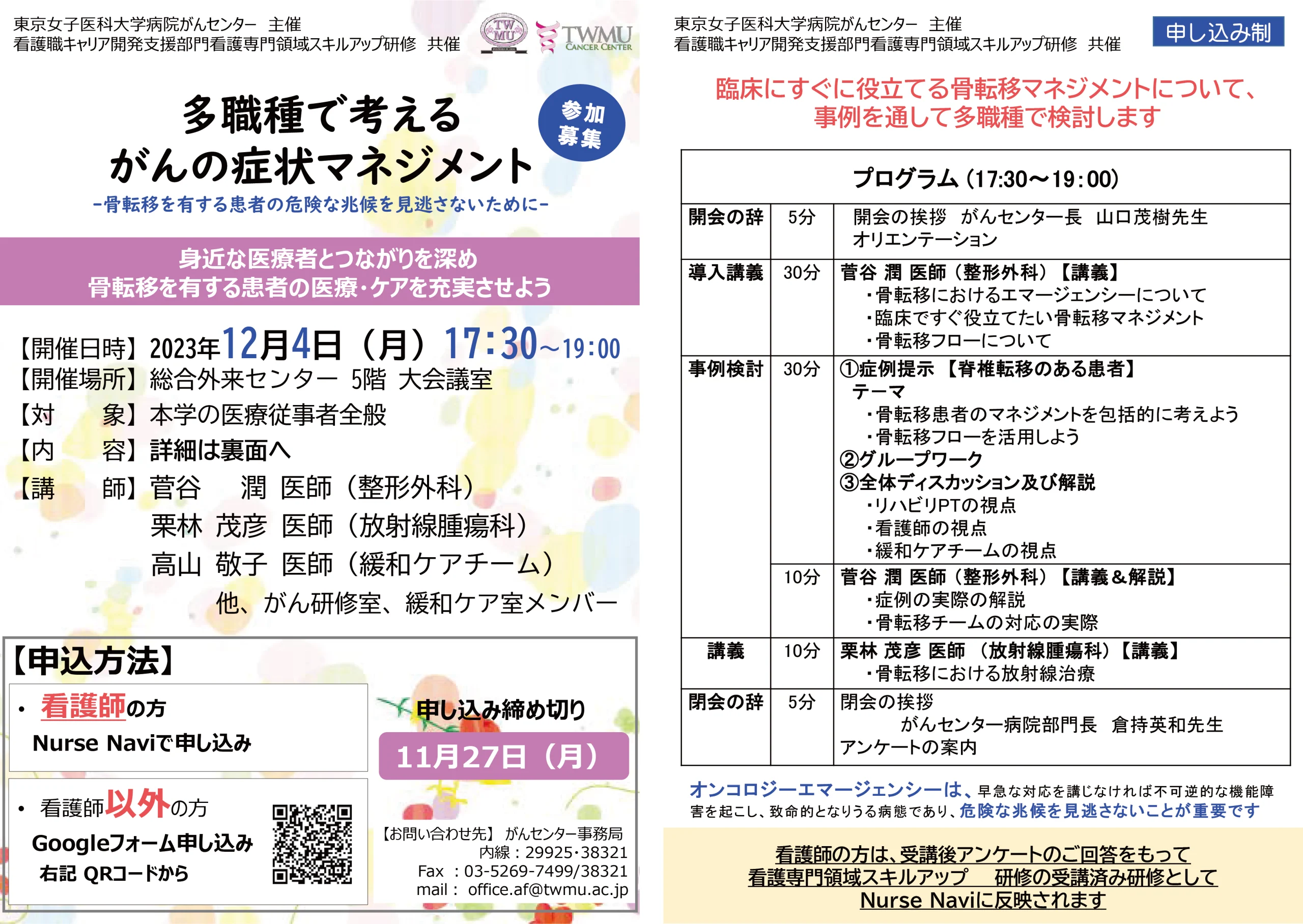 緩和ケア室・看護職キャリア開発支援部門看護専門領域スキルアップ研修との共催)