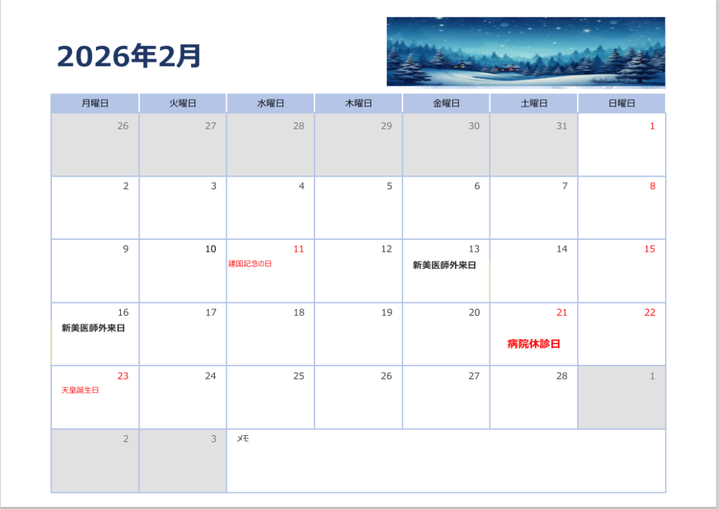 | 月曜日 | 火曜日 | 水曜日 | 木曜日 | 金曜日 | 土曜日 | 日曜日 | |
