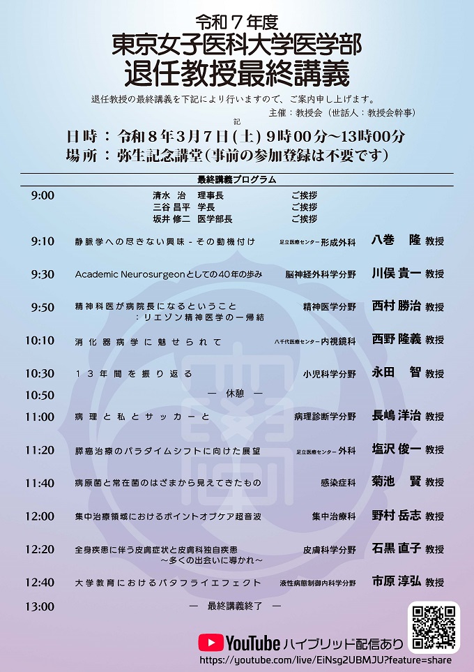 【医学部】退任教授最終講義のお知らせ:2026年3月7日(土)