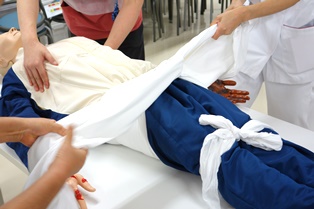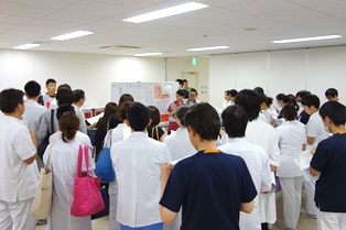 9月1日に実施される病院総合防災訓練に向け、8月24日、25日の2日間に当施設を利用した医療救護所訓練を救命救急センターと病院防災・減災対策支援室の協働主催により行いました。今回は、医師をメインとした救護所内での活動内容とルール説明、スキルステーションでの具体的な手技、症例に応じた対応の他、メディカルスタッフの机上訓練等を行いました。参加者(スタッフ、タスクを除く)は、両日合せて医師55名、看護師68名、メディカルスタッフ71名となり、災害への備えに対しての意識レベルの高さをうかがい知ることができました。
