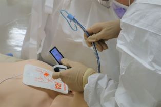 東京女子医科大学東医療センター救急医療科のICLS講習会で、発熱を想定したシナリオによる「COVID-19版 蘇生の実践」を行いました。防護服の着脱、患者への接し方、人数制限、使用する医療器具・機器の注意すべき点や蘇生方法の通常との違いをデモストレーションと解説で学び、感染を防御しながらの実践底な二次救命処置トレーニングのスキルを習得しました。