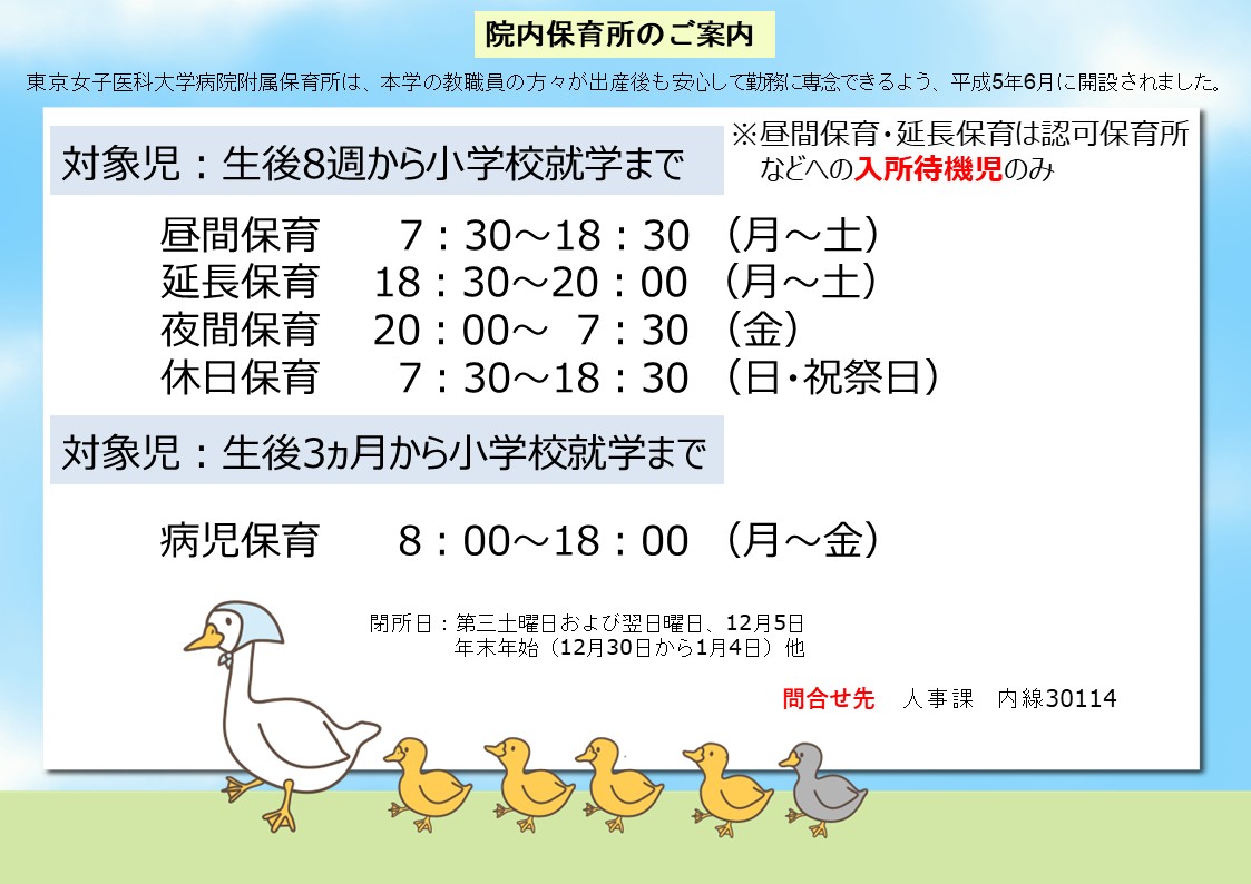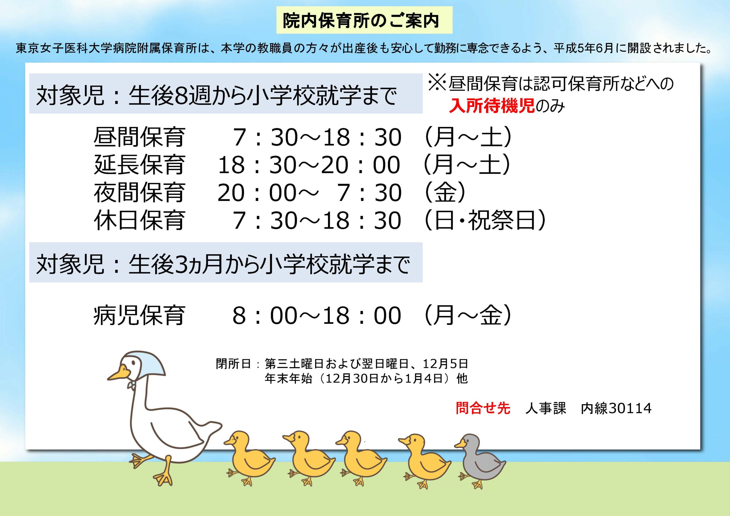 03-3353-8112(代表)内線31051 / 31052(病児保育室)
