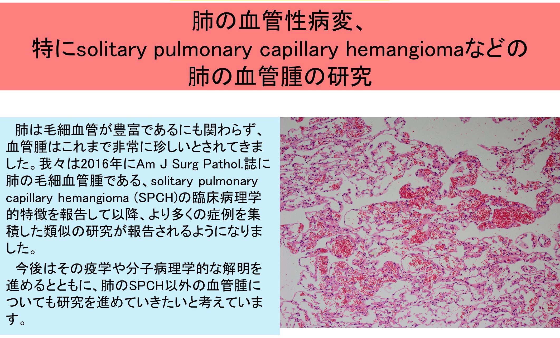 肺の血管性病変、特にsolitary pulmonary capillary hemangiomaなどの肺の血管腫の研究
